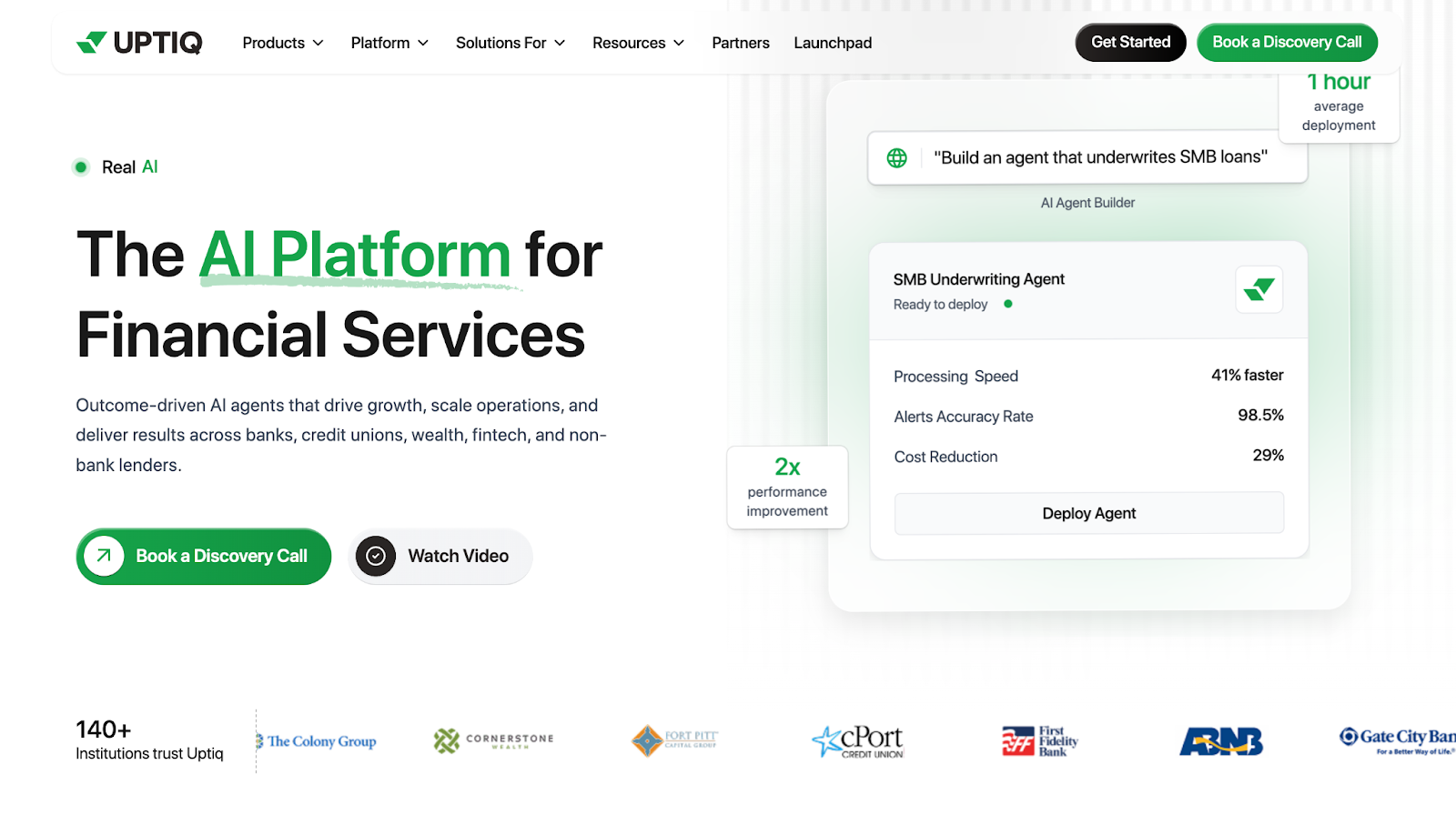 With native connectivity to 100+ core banking and wealth management platforms, Uptiq enables institutions to scale from a single agent to enterprise-wide deployments without compromising regulatory standards.