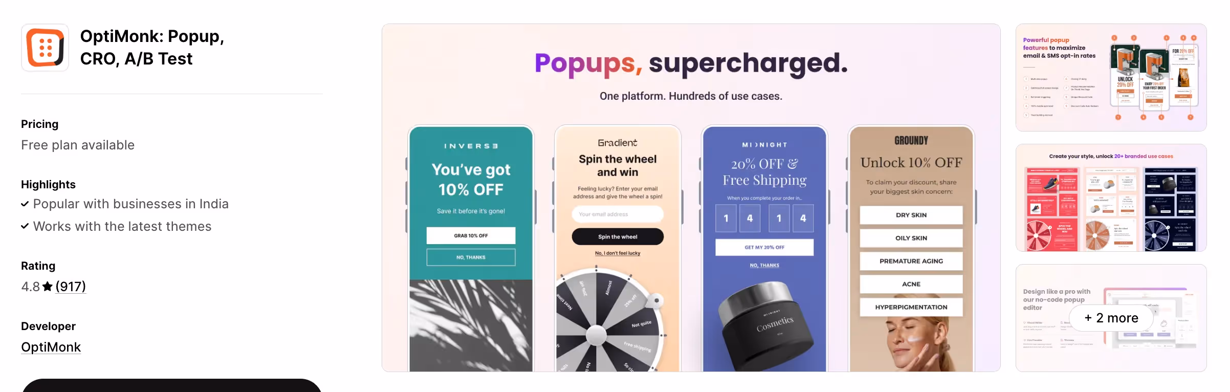 OptiMonk offers a free plan with 10,000 pageviews per month, making it accessible for smaller stores. As you grow, their Essential plan ($29/month) and Growth plan ($99/month) provide increased pageview allowances and additional features for scaling your recovery strategy.