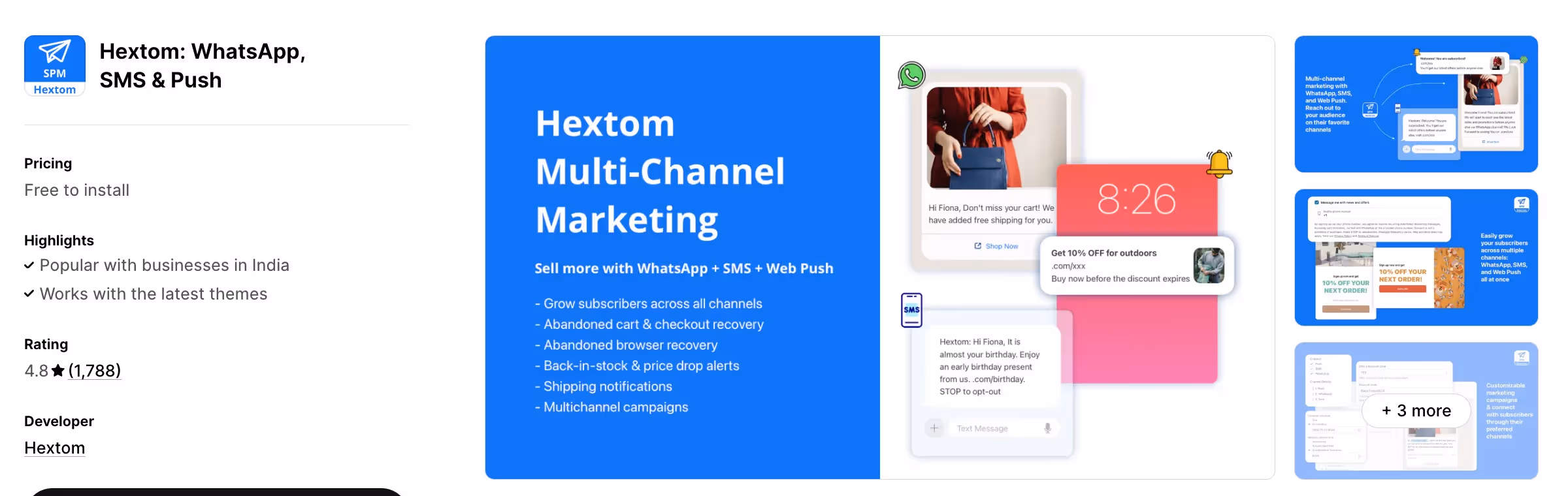 What's especially useful about Hextom's approach is how it builds your subscriber list across all channels simultaneously. Their customizable popups collect WhatsApp, SMS, and web push subscribers, giving you multiple recovery options for future abandonment scenarios. This creates a growing recovery ecosystem that becomes more effective over time.