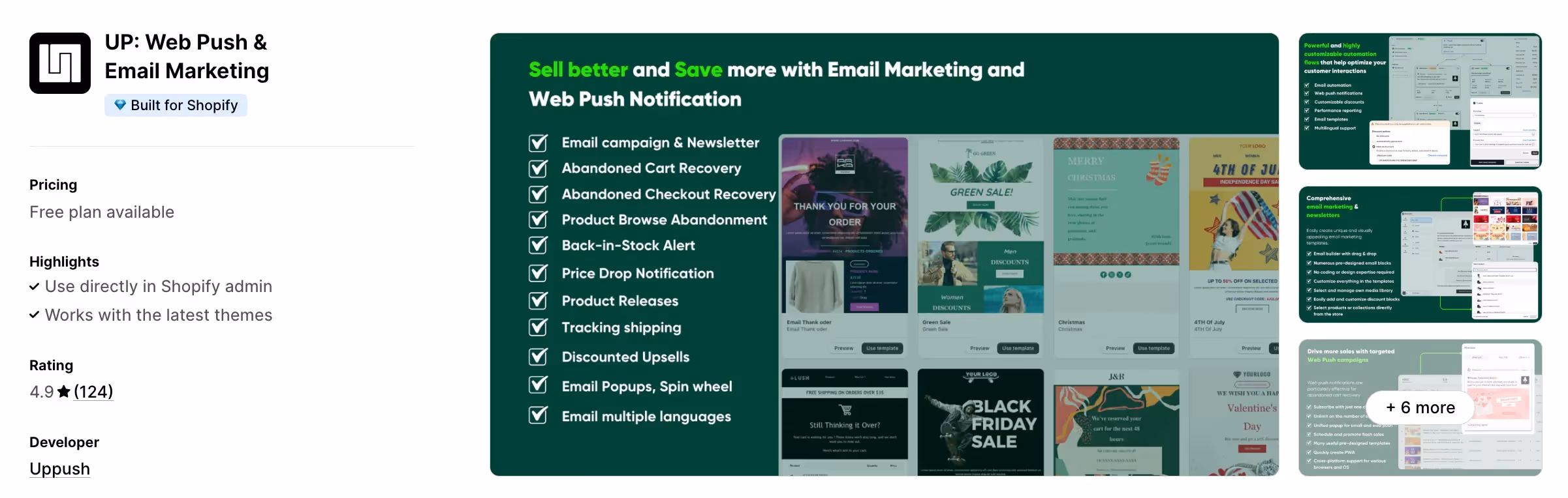 Uppush offers one of the most comprehensive abandoned cart recovery solutions for stores on a budget. With their free plan offering abandoned cart recovery functionality right out of the gate, it's an exceptional value proposition for merchants just starting their recovery efforts.