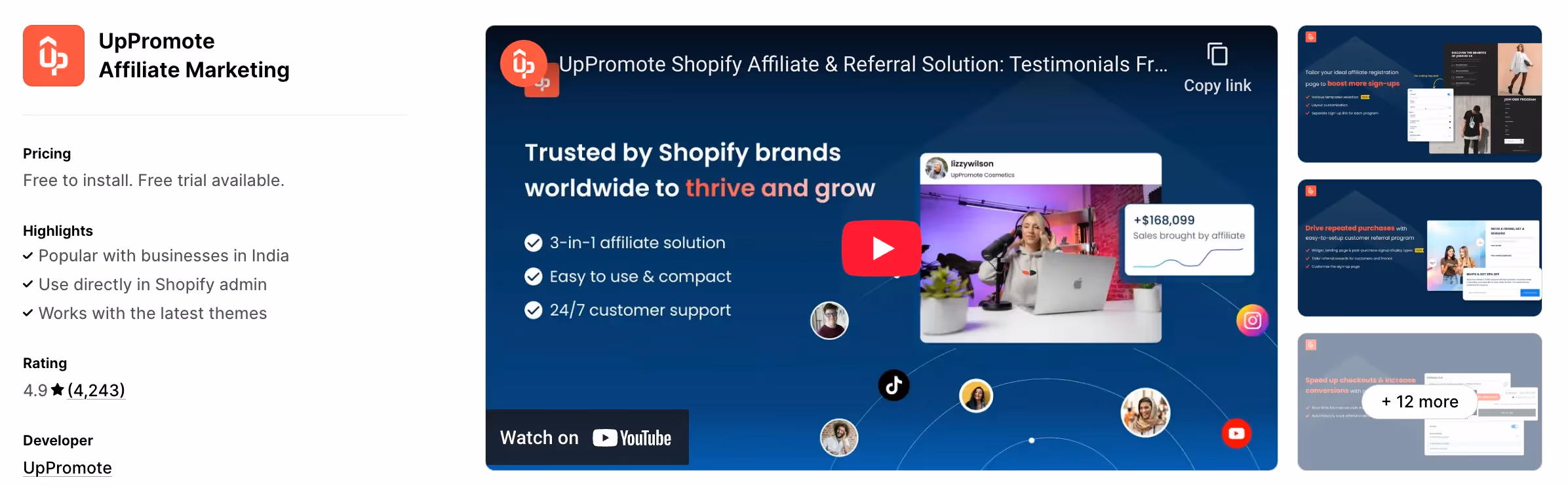 Pricing starts with a free plan that allows you to approve up to 200 referrals per month. Most skincare brands will benefit from the Growth plan at $29.99/month, which adds customer referral programs and store credit capabilities. Larger brands may prefer the Professional plan at $89.99/month, which includes auto-payments and advanced commission features.