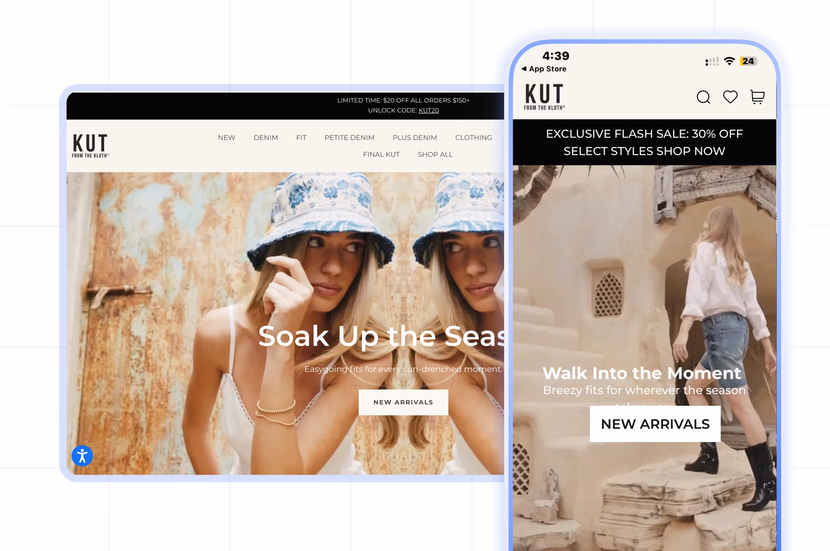 Kut from The Kloth stands out by making premium denim discovery personal and visual. Firework's shoppable video platform transforms how customers explore fits, with real women showcasing different styles and washes that help shoppers find their perfect match.