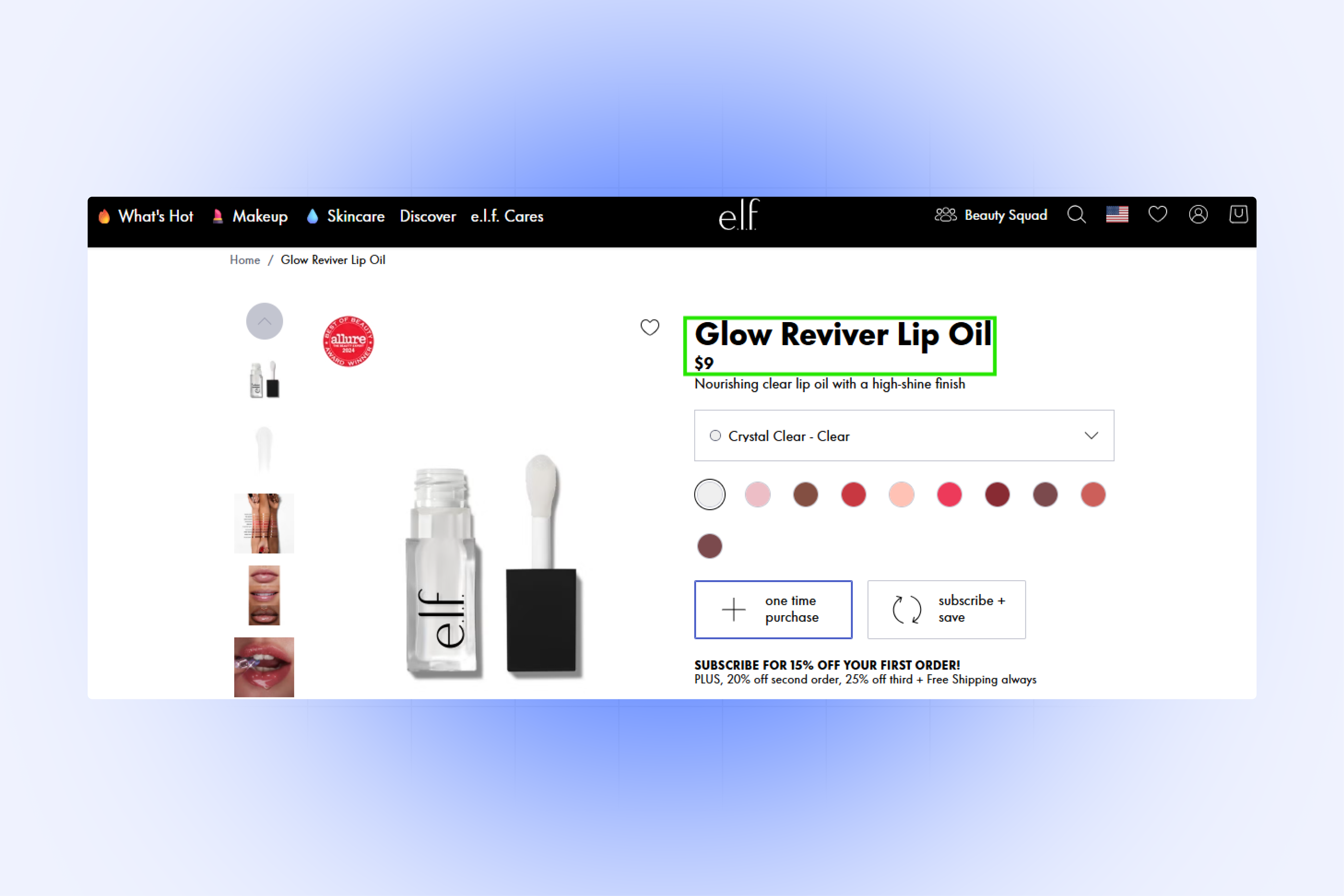 Elf’s PDP and PLP are a masterclass on conversion rate optimization. At first glance, you’ll notice the information provided is specific and in a set sequence.