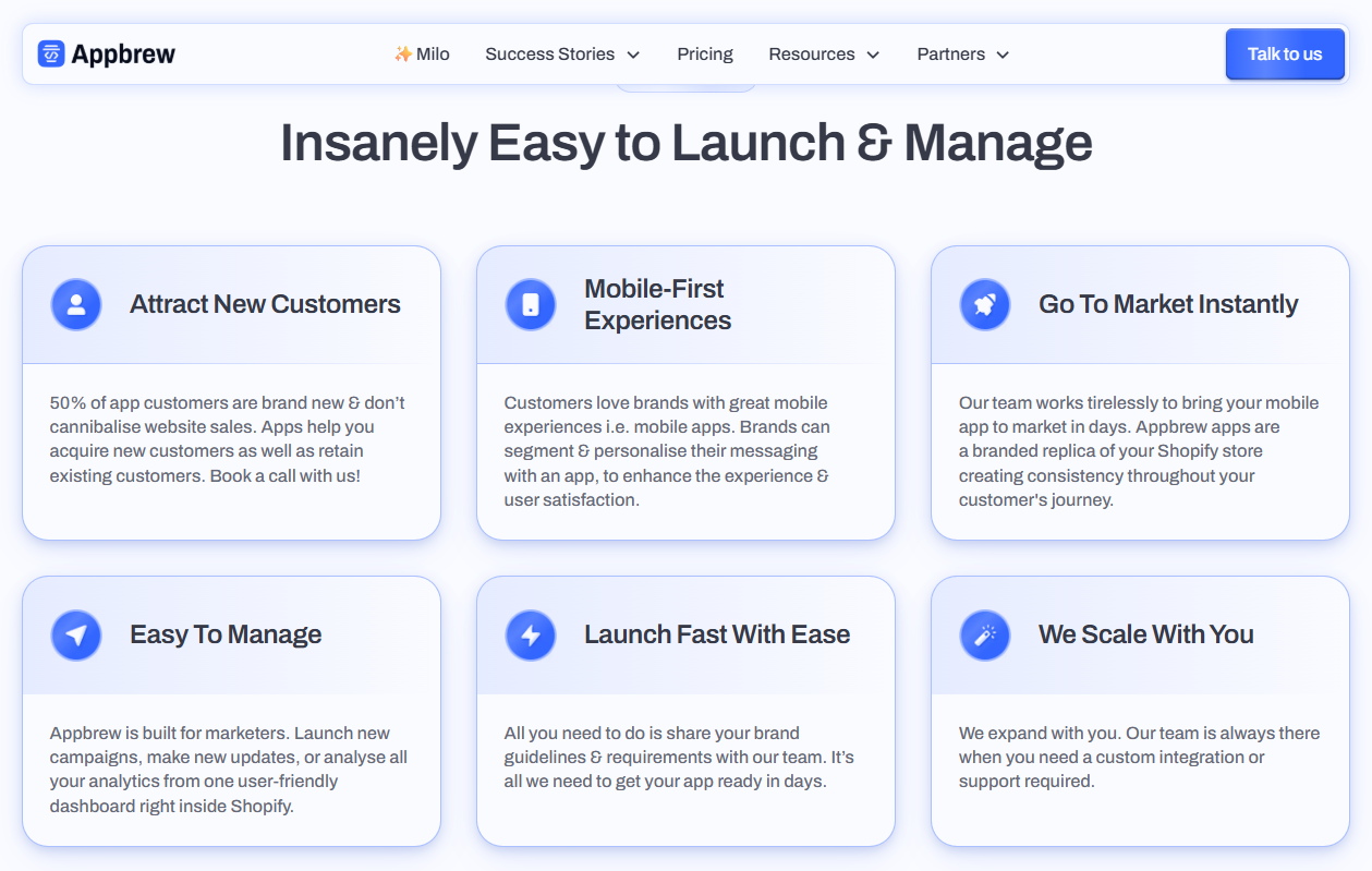 Appbrew is built for Shopify teams that want to move fast without adding technical overhead. It helps you launch, run, and scale a mobile app as a real growth channel, not a side project. From setup to day-to-day campaigns, everything is designed to fit into your existing operations.