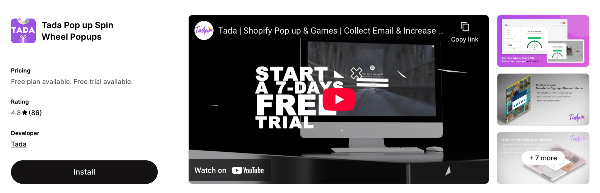 Upsell by Tada focuses on gamified upsell and cross-sell experiences, using interactive formats (like games or playful widgets) to make offers feel less like ads and more like rewards. It aims to boost engagement and AOV by rewarding shoppers for adding items or increasing cart value with spins, prizes, or bonuses.