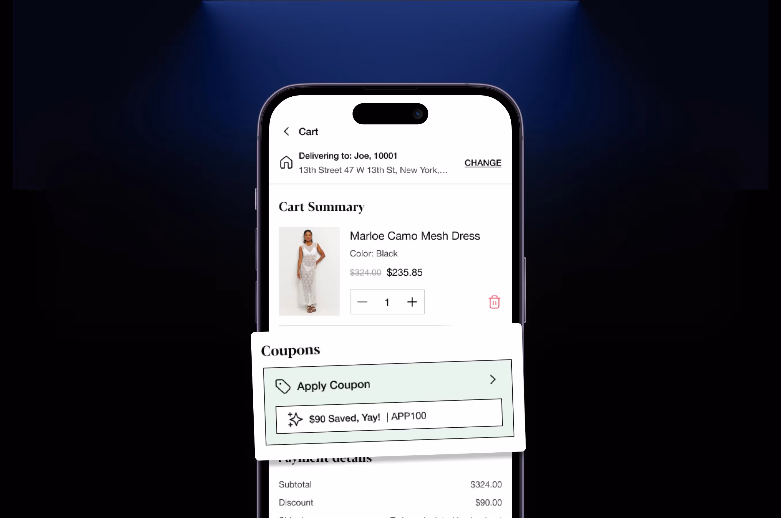 This discount applies exclusively to a customer’s first purchase made through your mobile app.