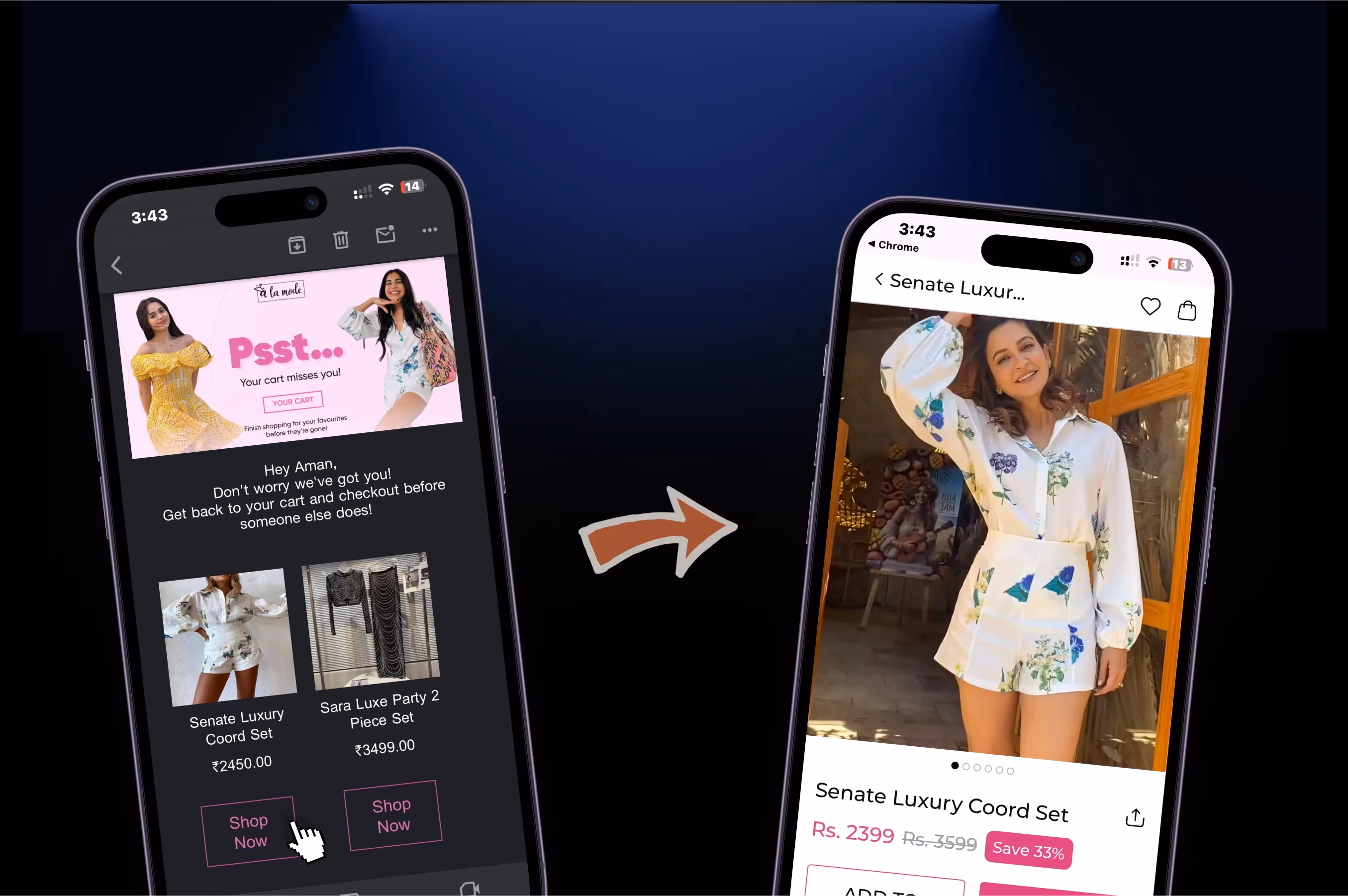 Email Body: “Hi [Customer’s Name], your cart is waiting! Download our app now and get an extra [discount percentage]% off on your purchase. Just click here, and we’ll take you directly to your cart in the app!”