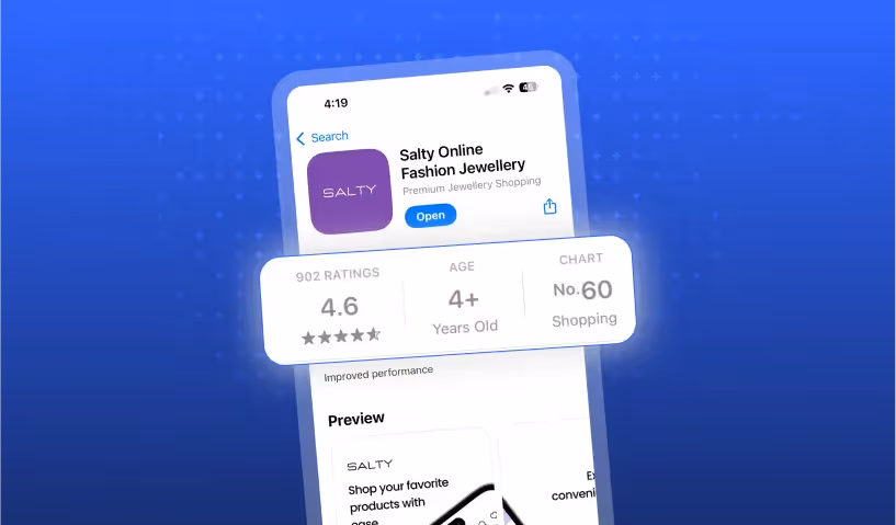 Salty Accessories is a jewelry brand in India for young people, focusing on trendy designs. It began creating jewelry for Gen Z and millennials. In one year, it delivered over 100,000 orders and grew a large audience on social media. Salty planned to expand its product range to include 3,000 designs. To accommodate such high demand, it needed a reliable sales channel acting as a community. An app would help it retain customers, optimize conversion rates, and create a loyal user base.