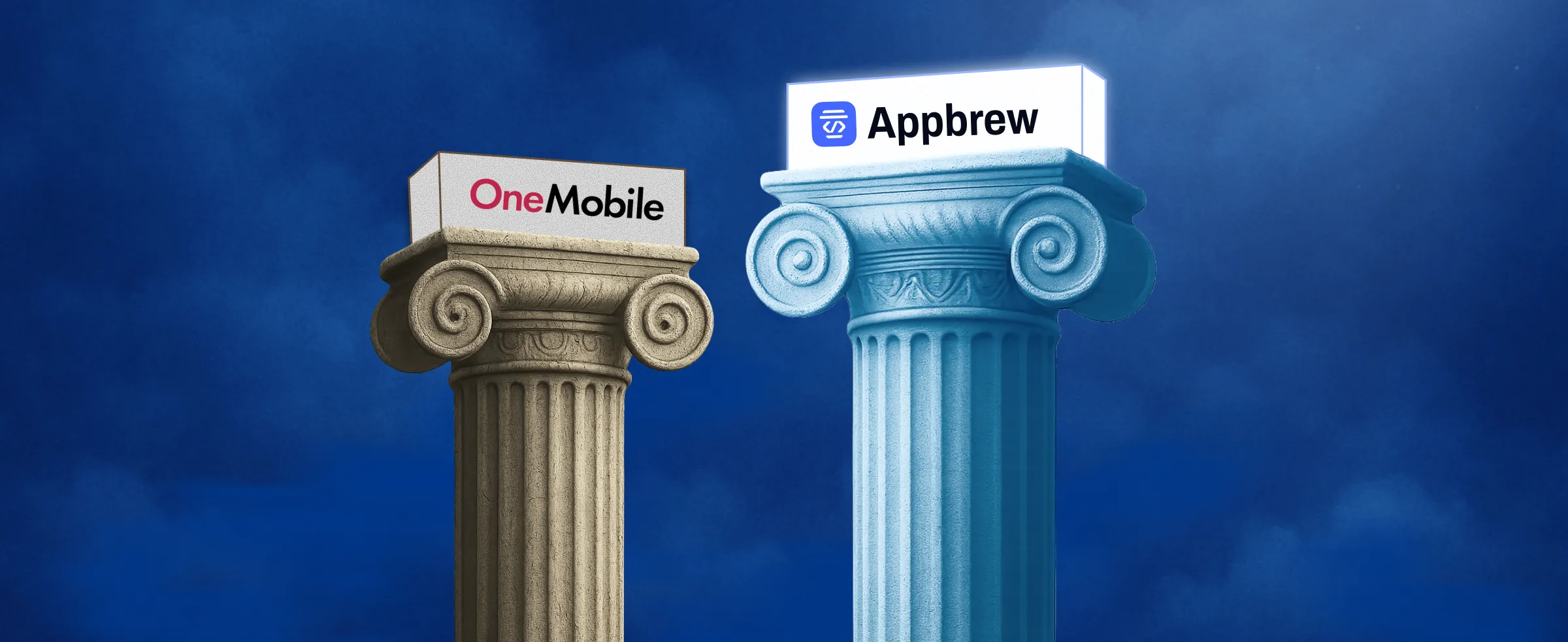 At a glance, OneMobile and Appbrew both share a React Native core, real-time syncing, and solid performance, but Appbrew's architecture is significantly more advanced and better optimized for conversions.