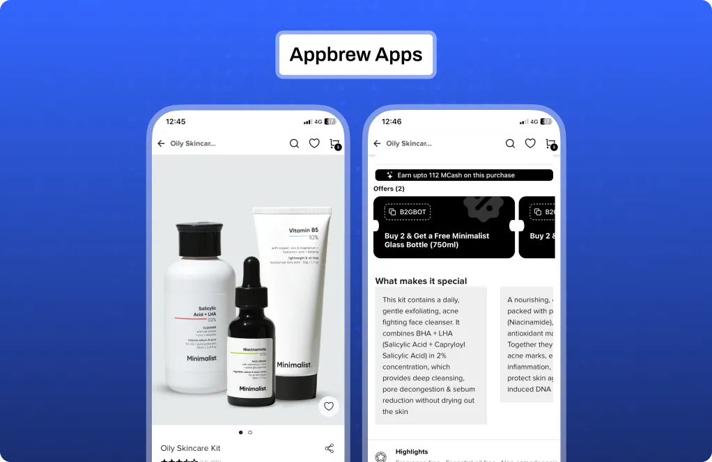 With Appbrew, you create hyper-personalized app experiences tailored to every customer segment. Dynamic homepages adapt to user behavior and location, promotional banners change based on purchase history, and the entire experience reflects your unique brand story.