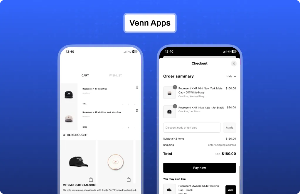 Venn Apps provides app-exclusive drops and basic discounting, while Appbrew comes with an advanced promotional engine built to increase AOV and conversion,